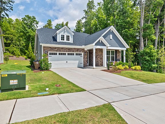 Better than new one-story ranch in Wake Forest on corner, wooded lot! The Turnbury Farmhouse offers all of the function and accessibility of a ranch home without falling short on space. It provides a great open concept floor plan with a large chef's kitchen, family room and cozy separate dining area. The kitchen is upgraded with white cabinets, soft close doors and drawers, pullout shelving and trash. It features a large pantry, subway tile backsplash as well as a built in microwave, gas oven and range. The primary suite is tucked away in the back of the home for privacy. It boasts a large walk-in closet and oversized shower in the deluxe, dual vanity bathroom! Two secondary bedrooms are located in the front of the home providing space for guests and/or work-from-home options. Laminate flooring throughout main living areas including primary. Updated light fixtures in entry, bedrooms, dining and bathroom. HOA dues cover yard maintenance, fertilization, weed control and annual mulching. One level living with no real steps and open floor plan make this home easy to live and age in! Come and experience all of the privacy and beauty this home has to offer today! Seller is Licensed Real Estate Agent