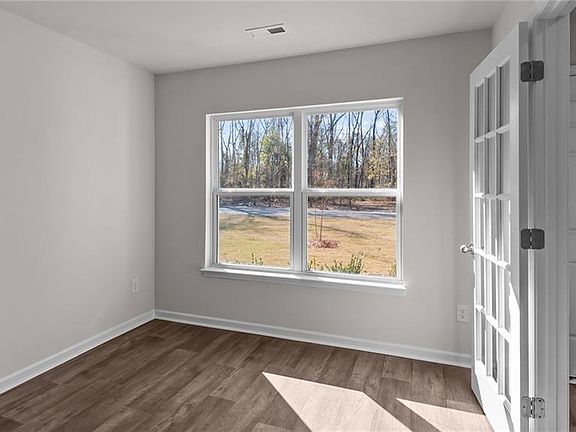 Welcome to the Belhaven, one of our two-story floorplans at Aspen Place located in Thomasville, NC, offering 3 modern elevations. This floorplan features 4 bedrooms, 2.5 bathrooms, 1,991 sq ft. of living space, and a 2-car garage. Upon entering through the front door, you will encounter a flex room to the left, before passing by the staircase and powder room. The inviting foyer leads you to the heart of the home, where an open-concept layout encompasses the spacious living room, and a well-appointed kitchen that opens to the covered patio. The kitchen is equipped with stainless steel appliances, beautiful granite countertops, a functional kitchen island, and a corner pantry. Making your way upstairs, you’ll discover the laundry room straight ahead, with an additional bedroom and primary bedroom to the right. The primary bedroom includes a spacious walk-in closet, walk-in shower, and dual vanity. On the back of the second floor are two additional bedrooms separated by a full bathroom.
