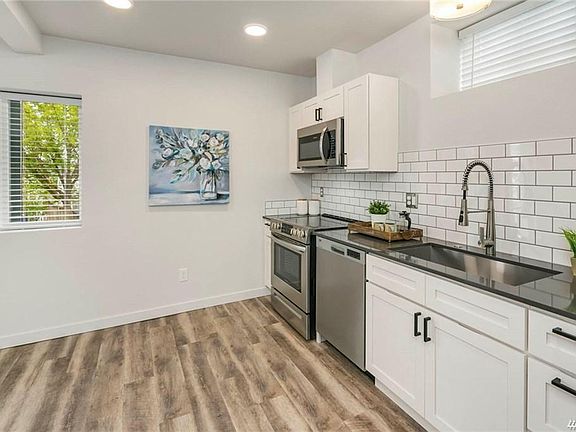 Beautifully updated 1 bedroom , 1 bath unit on main level with designer finishes throughout. Enjoy a fully updated bathroom, a modern kitchen with white cabinets, quartz countertops, and SS appliances. Luxury vinyl flooring throughout and stacked washer/dryer included. Conveniently located--minutes to downtown, I-5, I-90, parks, restaurants and shopping. 1st mo. & $1700 Sec Deposit. $49 non-refund app fee per 18+yo applicant. No Smoking. Pets on case by case basis. Tenant will be responsible for utilities. Each applicant, 18 yrs of age or older, must apply for credit, rental, and employment history. The applicant will pay directly to the service provider. We do not accept Co-Signers and we do not accept reusable tenant screening reports.
