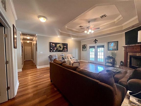 This home is wonderfully Designed, Appointed and Landscaped on an acre lot in Carlyss. It has Tray ceilings in Living Room and Master Bedroom, Whirlpool Tub in the Master Ensuite and a seperate Large Shower. The Wood-Look Vinyl Flooring found throughout the house is beautiful and durable. There are Three Bedrooms and an Office off the Living Room seperated by French Doors. You have to see the 28 x 32 shop with outdoor kitchen in person to fully appreciate it. The propane stove comes in handy during weather events and the shop is plumbed with a large stainless steel sink for cleaning and preparing shrimp, fish, duck, dear or whatever else you might bring home. The outdoor brick-paver pit is already built and ready for your evenings relaxing by the fire. TV's in the Living Room and Back Patio stay with the home.