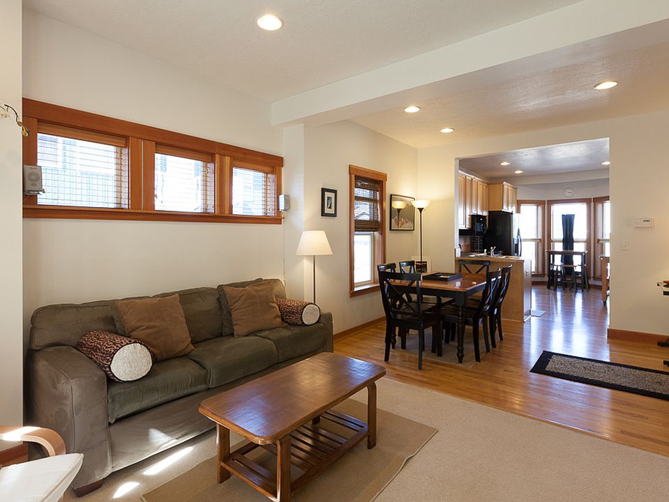 Experience the charm of this delightful apartment featuring vaulted ceilings and plenty of windows that keep the space light and bright. With pretty wood floors, granite countertops, central heating, air conditioning, and a cozy fireplace, this home offers glimpses of the Columbia River and Mt. Adams. The master bedroom boasts a new king-size bed with a memory foam pillow top for sweet dreams. Enjoy the BBQ deck and the convenience of a short walk to downtown. Just minutes from windsurfing, kiteboarding, kayaking, and fishing, while skiing on Mt. Hood is a mere 35 miles away. The apartment features a stainless steel kitchen, perfect for preparing meals after a day of adventure. Pets are welcome at pet-friendly homes only with prior approval and a $15 per night pet fee. Pets are not permitted on the bedding or furniture and must never be left at the home alone unless they are crated or kenneled. The Columbia River Gorge, with its mountains and rivers, offers the vacationer and recreation enthusiast the opportunity to windsurf, mountain bike, kayak, golf, ski, hike, fish, or just relax in the unhurried pace of a natural paradise. Historic buildings line the beautifully scenic streets of downtown Hood River, with a bustling shopping district featuring boutiques, designer shops, outdoor adventure gear outfitters, antique shops, art galleries, and no less than 30 restaurants. There are many orchards and vineyards in Hood River. The Hood River Valley is known for its luscious apples, pears, cherries, peaches, and other fruits, and for the view of the majestic snowcapped peak of Mt. Hood. People from all over Oregon make an annual trek in the fall to the many farm stands to stock up on fresh apples and pears. Other produce is available and varies by season. The award-winning Hood River Vineyards is located on a hillside overlooking the Hood River Valley. Their tasting room features traditional wines and fruit liqueurs. The Columbia River Gorge, with its magnificent views, makes this a dream spot for a destination wedding. Known as the windsurfing capital of the world, Hood River's latest distinction is due to the winds from the Columbia River Gorge, best during the middle of the day, creating ideal conditions for riding the waves. To enjoy the view of 'boardheads' at play, drive to the Columbia Gorge Sailpark or follow Second Street to the waterfront. The Mt. Hood region and its more than sixty miles of forested mountains, 77 waterfalls, and myriad lakes and streams are a rip-roaring mecca for outdoor adventure. The mountain is home to four ski areas and offers the country's only year-round skiing and snowboarding. If you choose to book this home, you will receive a separate rental agreement that will need to be electronically signed before your stay. There is a 30-day minimum stay requirement.