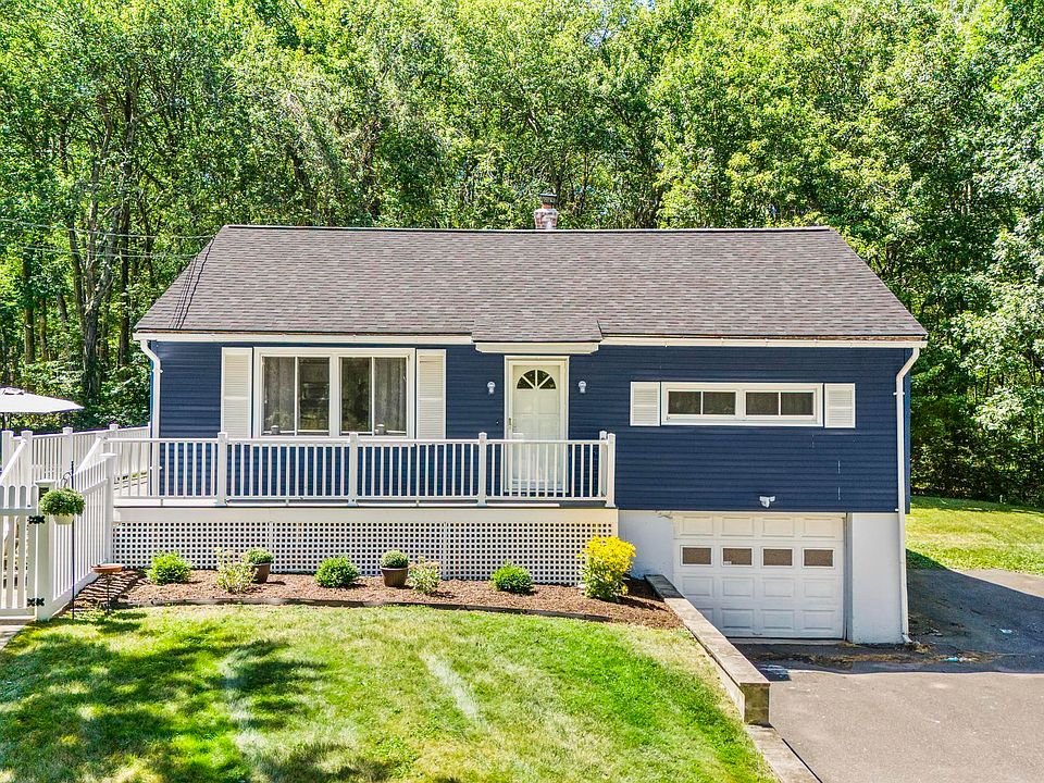 This inviting ranch in Wolcott offers comfortable living space on a private, level 0.61-acre lot. The home features 3 bedrooms and 1 full bath, with hardwood floors in the open living/dining area, a tiled eat-in kitchen, and laminate flooring in the bedrooms. A full unfinished basement with garage access and a walk-up attic provide excellent storage and expansion potential. Recent updates include a new roof, new chimney from roof-up, septic system 2004, and a new well installed in 2015. Outdoors, you'll enjoy a fully fenced side yard with low-maintenance composite decking and a white vinyl fence, perfect for relaxing or entertaining. Surrounded by woods yet close to parks and recreation, this property combines peace, privacy, and convenience in one great location!