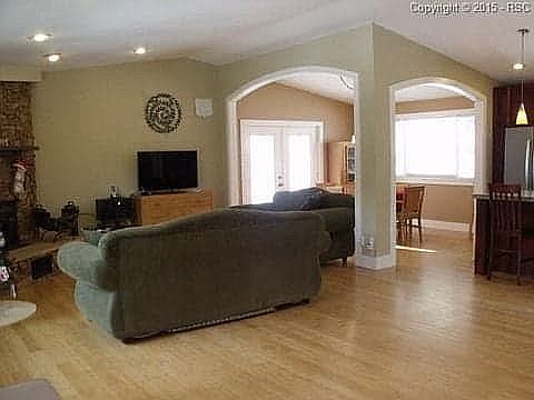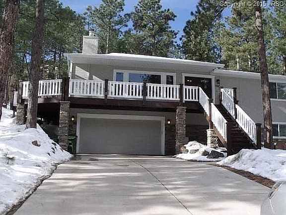 Highly desirable neighborhood in north El Paso County, across from United States Air Force Academy, with the nicest of neighbors. Award-winning Academy School District 20. Corner lot. No HOA, no covenants/no restrictions. Cozy and inviting custom home, 4 BR/3 BA, move-in ready. Safe, quiet country living surrounded by beautiful wildlife all 4 seasons. Watch family of deer from spacious wraparound deck with French doors leading into modern open-floor plan, scenic view windows, passive solar, and long hours of natural lighting. Great stone fireplace, bamboo flooring, granite countertop, large kitchen island, lots of wood kitchen cabinets, stainless steel appliances. Walk to famous 417-acre Fox Run Regional Park with 2 lakes. 5 minutes to I-25, super close to shopping amenities, and 35-40 minutes to Denver. Abundance of mature trees, blue spruce, ponderosa pines, and superfruit chokeberries. 1/2 acre lot with circular outdoor seatings around Fire Dept-approved open fire pit on your own retreat-like hill for campfire marshmallows and family stargazing nights. Low insurance because fire hydrant on land. Attached 2-car garage plus workshop. Low-maintenance stucco exterior.