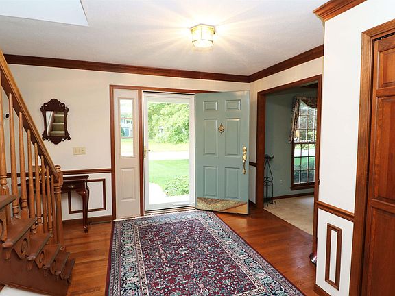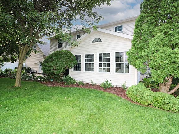 This spacious home in Quail Ridge in Granger has 5 bedrooms, 2.5 bathrooms, and is beautifully situated on the 5th hole of the Knollwood East golf course. The house welcomes you with a large foyer which is flanked on one side by the living room and the other by the formal dining room. The kitchen has an island, an eat-in area, and a sliding glass door the private patio with a landscaped garden. The family room has a gas fireplace and has warm, wood trim and built-in book cases. From here you'll enter the lovely bright and white 4 season sunroom. The main floor has the laundry room with a utility sink, plus a half bath off the kitchen. The upstairs has 5 bedrooms and 2 full bathrooms. The main bedroom is large and has an updated private bathroom with a granite double vanity top and walk-in tile shower. The hall bathroom has a tub/shower combination and a double vanity. The bedroom at the other end of the house is incredible, with wonderful roof lines giving charm to the 14'x23' room. The lower level has a family room, another dedicated room which can be used as an office, plus the unfinished area for storage. The roof was replaced in 2021 and the furnace in 2023. This gorgeous house is close to walking paths, stores, and is located in the PHM school district.