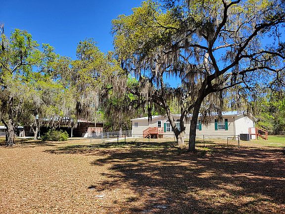 This beautiful property is located in the heart of the Ocala National Forest. 7.4+- acres, fenced/cross fenced with two mobile homes. Zoned A-1. Two separate wells/septic. Main home is 3BR/2 bath 2005 triple-wide, 2054 living sq ft. New metal deck roof in 2023. Very roomy, includes 750 sq ft screened porch, fireplace, washer-dryer, all kitchen appliances. Second home is 4 BR/2 bath 1986 double-wide, 1520 living sq ft but don’t let the age fool you! Newly renovated: flooring & paint throughout, new HVAC 3/2023, new electric upgrades, bathroom vanities and more. Barn: 40’x40’ pole barn with enclosed tack room. Large enough for RV storage, ATV’s, boats, etc. This is an excellent recreational property with beautiful large oaks and has airboat access to Lake Kerr. Salt Springs is nearby giving access to Lake George and the St. John’s River. Five other springs/preserves and numerous fishing lakes in the area. The surrounding forest is great for horseback riding, ATV trails, hunting & fishing.