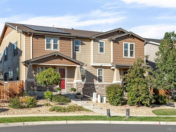 Positioned on a quiet cul-de-sac, this Westwoods Mesa paired home offers a private retreat. A low-maintenance exterior welcomes residents into a functional two-story layout. Natural light from southern exposure floods the interior through large windows with premium wood shutters. Located off the entry, a bright office provides a dedicated home workspace. An open-concept living and dining area promotes a seamless flow for entertaining. The kitchen boasts stainless steel appliances, granite countertops and a center island with seating. Upstairs, an expansive loft presents the perfect setting for a second living area. Three sizable bedrooms include the primary suite featuring a serene bath with a walk-in shower. An unfinished basement with egress windows offers endless possibilities for personalization. Escape outdoors to a fenced-in outdoor space complete with a stamped patio and artificial turf. Solar panels are an added upgrade. Ample storage space is found in a two-car attached garage.