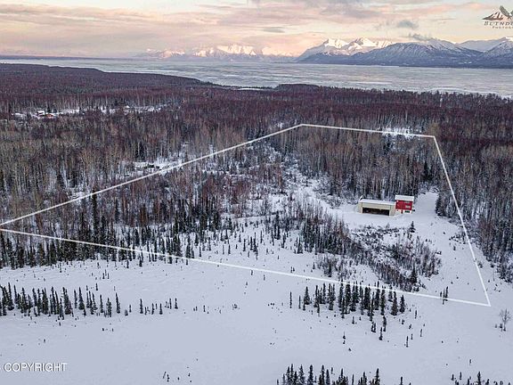 Remodeled 2520sf home, 3564sf hangar/shop on 20 acres! Property backs to state land-walk to Inlet, Goose Bay Game Flats! Property boasts overgrown airstrip, beautiful manicured lawn. New flooring, newer appliances, in-floor heat (1st level), custom trim work & tile showers, spacious master suite w/ jetted tub, walkin closet. 828sf shop w/ in-floor heat could be addl living. $10k siding allowance.