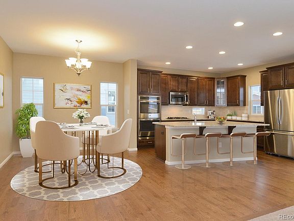 Gorgeous home featuring lots of natural light and Table Mountain views! The main level boasts a study with French doors, upgraded kitchen with granite counters, huge center island, upgraded 42 inch cabinets, designer backsplash, gas cooktop, double ovens, hardwood floors, pantry and stainless steel appliances, large great room and dining area, powder room and a mudroom with siting bench. Upstairs boasts a master retreat with en suite bath featuring designer tile and huge walk in closet, a laundry room, 2 bedrooms adjoined by a jack and jill bath plus the 4th bedroom with private ensuite bath and south facing balcony with foothill views. Full unfinished basement with extra high ceilings is ready for your finishing touches. Great location with foothill views to enjoy from the large trex deck and fully fenced back yard, front covered patio, balcony off the fourth bedroom, community playground and pool! Enjoy easy access to shopping, restaurants, schools, trails, parks, light rail, highways and more.