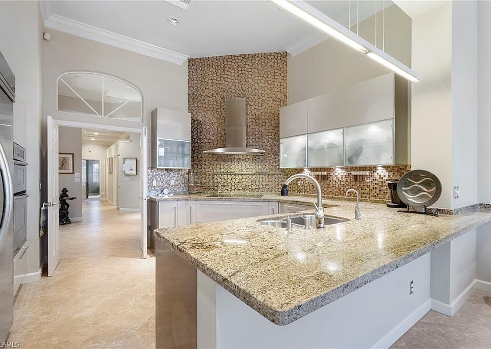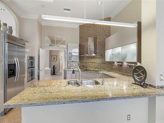 LOWEST-PRICE LAKEFRONT HOME AVAILABLE IN ALL AUDUBON GOLF & COUNTRY CLUB! Stunning, newly renovated & modern home with breathtaking lake & waterfall view, available in North Naples'/Collier County's coveted Audubon Golf & Country Club. Discounted Golf Membership + Golf Cart available with Acceptable Offer! This light, bright, airy & move-in-ready homes boasts contemporary upgrades throughout including 2019 HVAC & ductwork, new modern cabinetry, all new stainless-steel high-end appliances, renovated baths with modern floating vanity & frameless shower enclosure, premium marbled tile floors, air-conditioned garage, new light fixtures & more. Available furnished with gorgeous high-end furnishings. Luxurious screened entertainment deck includes pool, spa & ample outdoor space, both covered & open air, to enjoy the lakefront setting. Devon Green offers Lock & Leave living with exterior maintenance & landscaping included by the HOA. "Audubon Country Club" is perfectly located 5-min from Mercato & 5-min to SWFL's world-class beaches, with gated/guarded entry, championship Golf Course, tennis, pickleball, a newly renovated clubhouse with dining & a 2nd BRAND-NEW courtside club & café.