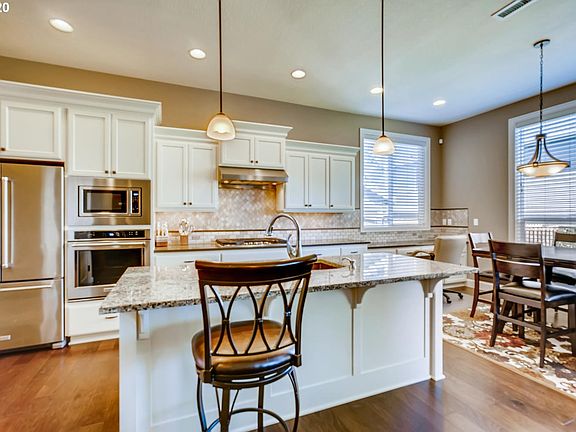 Quality abounds in this meticulously maintained Noyes model home! Functional great room plan features extensive wood flooring, a full-height stone fireplace with built-ins, deluxe kitchen with slab granite & quartz countertops and high-end SS appliances. Completely turn-key with ample upgrades, including central vacuum, covered patio with stamped concrete, formal dining with wainscoting, and more! Main floor den/bedroom w/ full bath. ENERGY STAR and Earth Advantage Platinum certified home.