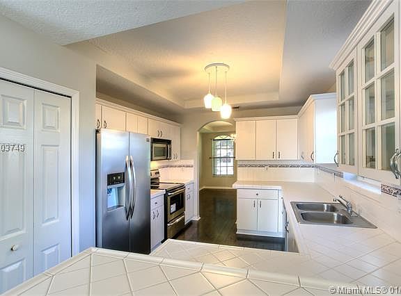 JUST REDUCED! Stunning lake view home is excellent condition. Located in a quiet cul de sac. Ideal family home with 5 bedrooms 4 bathrooms and a 2 car garage. Paved patio with pool and spa provides lots of space for entertaining and holiday gatherings or family celebrations. Wood floors throughout. Elegant 2 story foyer entrance, formal dining room and living room. One bedroom and one bathroom downstairs. Inside laundry area. Convenient access to great school, excellent shopping, major highways and Miami airport.