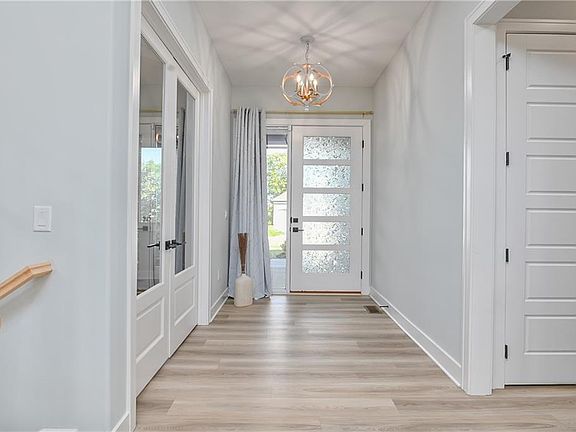 Stop the car! This stunning 4 bedroom home has many options for 5th bedroom. Utilize the finished basement with full bathroom or the flex/office space! Nearly new Modello 2 Story home built by Pauli Homes. Buyers will appreciate the upgrades totaling over 74k of upgrades. This home is the perfect floor plan with lofty 10-foot ceilings, french doors that lead into an office/flexspace. Hardwoods on main floor that offer a modern clean look. The open-concept in the great room with Heatilator fireplace. Designer trim walls and upgraded light fixtures offer such character to the home. Kitchen has ceiling height custom cabinets, gas range top with metal hood. Upgraded backsplash and huge center island. The large walk in pantry has a prep area counter perfect to hide away those large appliances. Bootbench off garage in mud room. Upstairs has a "gathering loft", with primary bedroom and 3 additional secondary bedrooms EACH with their own bathroom. Primary has a separate tub and shower, dual vanities, and large walk-in closet. Finished basement with HUGE recreation area, amazing bar with peninsula and 3/4 bathroom. Large covered porch, and 1/2 bath off mudroom. This neighborhood features amazing amenities including Swimming Pool, Pickleball Court, Children's Playground, new Clubhouse & Outdoor Grill with Fireplace.