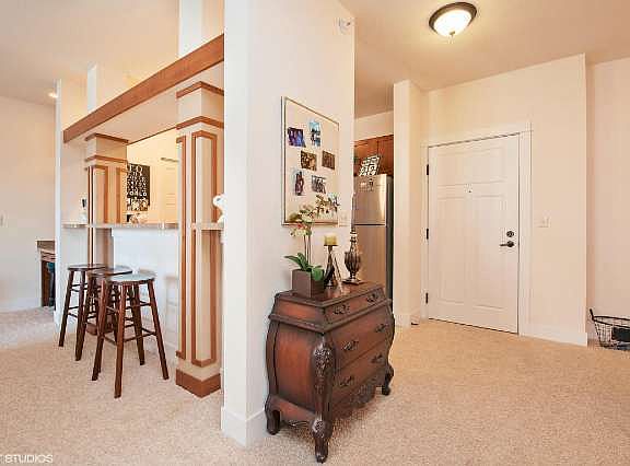 Public Remarks: One of the only 2 bedroom/2 bath larger units in this complex! Easy to work in kitchen has new flooring, new SS appliances, pantry & breakfast bar that opens to the spacious living room with gas fireplace and patio doors that lead to the quaint balcony. Master bedroom located on one side of the unit with double closets and private bath. Additional full bath and bedroom are opposite the Master. This unit also features a convenient in-unit laundry. Other amenities: pet friendly, community room, exercise room & one of the only buildings with an elevator. Act fast!!