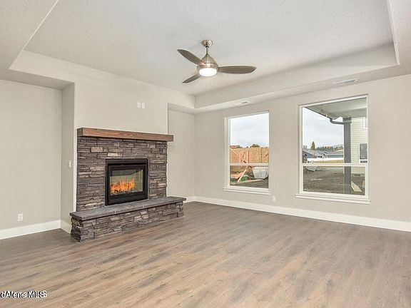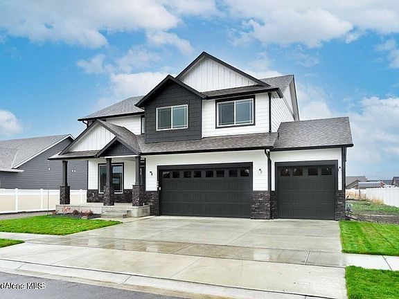 Beautiful new home available in Timber Glade in Rathdrum! Nearly 2,500 square foot, 4 bed 2.5 bath home w/ 3 car garage including gas F/P with stone accents, Central A/C, huge back patio, large kitchen with island, and walk-in pantry. Soaring ceilings, large loft area, gorgeous quartz countertops throughout, and tasteful accents like under cabinet lighting, provide comfort and luxury. Master suite with garden tub, gorgeous tile walk-in shower and dual sinks as well as an enormous walk-in closet. See the beautiful curb appeal with stone accents and covered front porch! Photos are from previously completed Teton plan.