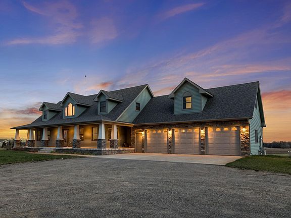 Beautiful Fully Finished Home situated on a stunning 4.2 Acres. Enjoy Beautiful Views during those MN Seasons from the Stunning Front Porch..VERY Spacious Home with 5+ BR, 4+BA, main floor primary bedroom with en suite 3/4 bath with a large Walk in Closet..Large mudroom, main floor laundry, attached heated 3 car garage with Geothermal heat/cooling. This Home features a Stunning well Built floor to ceiling stone gas fireplace, large bonus room above garage, 3 season porch. The Lower level has in-floor heat, sauna, 2 BR, 3/4 bath, family room, plus workout room & storage. This Basement has a separate entrance from the garage that is perfect for a future Apt. MIL Suite or a Business in the Basement... Now for the perfect out Building.. a 2400 sq ft shop has 24x36 heated insulated section and a larger non insulated side with a 14' center door. This Home is waiting for the perfect buyer..Sellers are offering a $5,000 appliance or flooring allowance for the New Buyer...