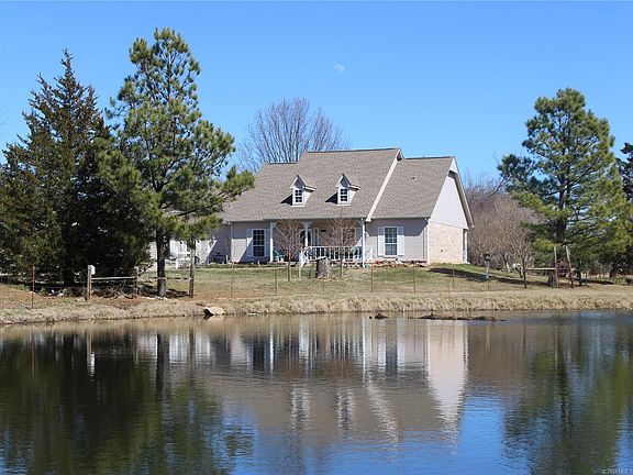 13.6 Acres of Country Living just outside Coweta with very private setting, you are greeted just inside the entry with a large scenic stocked pond. Updated split flr plan with engineered wood flooring, newer roof and hot water heaters. This property is ready to go for a small cattle or horse operation. Detached 2 story 30x36 + 10x12 2 car garage/shop with electric, hot water tank, 2 sinks and toilet with it's own septic system. 40x40 cattle barn and other out buildings. See docs for additional features.