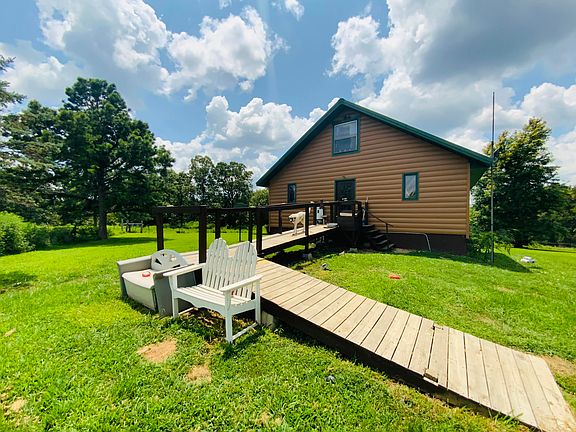 Serene seclusion! Adorable hobby farm on 7+ acres with a pond, close to town! Three out buildings, including brand new steel 30x30 shop with two 12ft lean-to's on either side. The steel siding gives the home a beautiful rustic log cabin feel, with little to no maintenance! On the main floor, you'll find all your living spaces as well as a good size master bedroom with brand new LVP flooring. Upstairs there are two bedrooms, and the basement has a walk-out entrance and a full bathroom to come right in from working outside and hose off! Could be unfinished 4th bedroom in basement. There is also a 2 car detached carport and new water heater. Everything you need just a short distance away, about 20 min to Cabool!