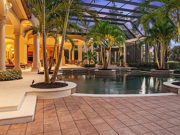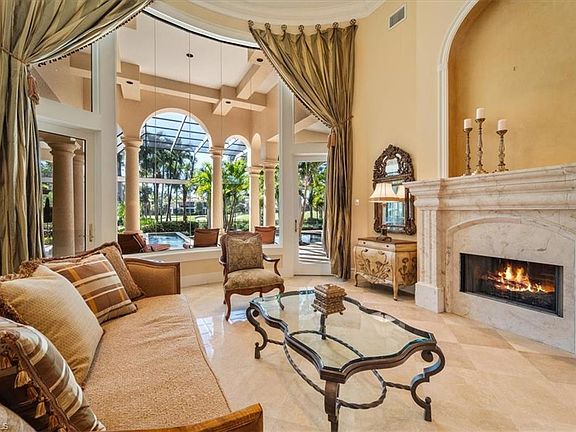 FULL GOLF MEMBERSHIP AVAILABILITY SLOT! Magnificent ,Custom, Estate home built by Frey and Son Homes is located in the desirable and Exclusive IL Corsini of Mediterra with views of the 15th fairway of this Tom Fazio Championship golf-course.Stunning Villa Arezzo Model with a Northern Italian Exterior style ,features an arcade at the entry bell tower. Upon entry you'll be greeted by the grandeur of custom molding and the timeless Allure of marble floors, setting the tone for the entire home. High tray ceilings and coffered details add an air of sophistication to every room. This custom home has an expansive open concept floor plan . The kitchen has a center island which over expands into the family room.Wine enthusiasts will be enamored by the walk -in wine cellar.Meanwhile, the media room promises endless entertainment possibilities.The luxurious primary suite has his and her custom walk-in closets,dual baths ,double vanities.Enjoy the outdoor living with resort style feel. The outdoor fireplace sets the tone as you enter the covered patio which host outdoor kitchen with bar seating and separate dining.The expansive pool and sunken spa provide sweeping views of the golf course.