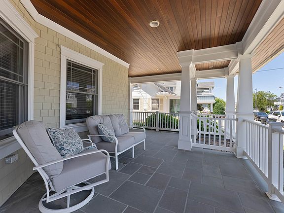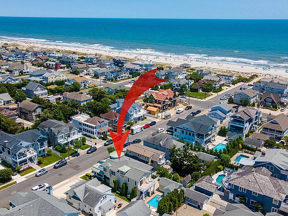Welcome to 153 102nd Street, a stunning 5 bedroom home ideally located just 8th from the beach and offering the perfect blend of luxury and convenience. The upside-down design boasts a spacious first floor family room featuring a stylish bar with beverage refrigerator and ice maker seamlessly flowing outside to a beautifully fenced-in yard and an inviting in-ground pool. You will find ample lounging space around the pool along with a standing bar and enclosed cabana with full sink and under counter refrigerator perfect for outdoor entertainment. The family room also offers a convenient half bath servicing the pool area. You will also find on the first level 3 bedrooms, with the front room offering a suite style space with full bath and office. As you make your way upstairs, you will notice the open floorplan with beautiful, vaulted ceilings and modern finishes. A spacious living space opens to a deck with water views and ample space for additional outdoor dining or lounging. The modern kitchen with tray ceiling accents the open floorplan with elegance and functionality. A half bath also services this living space. This level also features two more bedrooms with one being the primary with large ensuite, soaking tub, and private balcony. The prime location allows for easy walking access to downtown Stone Harbor, with its charming shops and restaurants. This exceptional property promises a lifestyle of comfort, convenience, and coastal elegance. Make this your luxury Stone Harbor escape today!