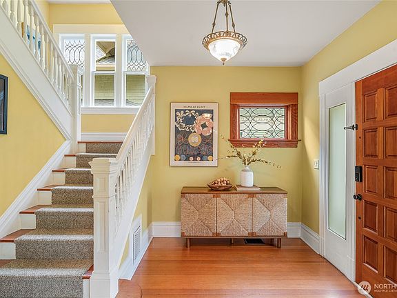 Timeless charm meets modern updates in this beautifully renovated Four Square Craftsman in the coveted Leschi neighborhood. Original hardwood floors, coved ceilings, and arched doorways showcase classic craftsmanship, while a new roof, updated plumbing, renovated kitchen/baths and finished attic provide modern convenience. The upper levels feature 3 spacious bedrooms and a luxurious primary suite alongside a dedicated workspace. The finished basement offers flexible space for a rec room, home gym, or more. The expansive backyard is perfect for entertaining, with a composite deck, raised garden beds, and new fence. Quiet, desirable neighborhood, just minutes from Lake Washington, Downtown, and local gems—this home is a true Seattle treasure.