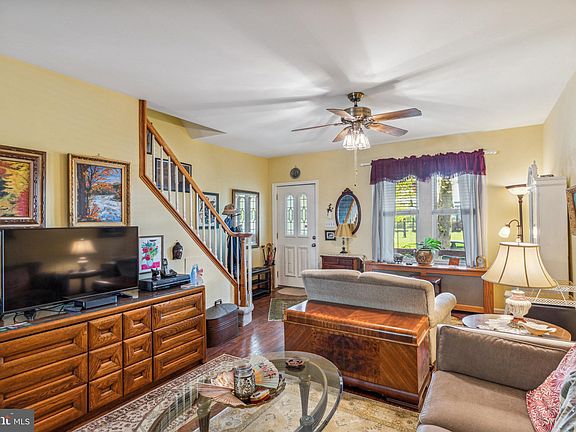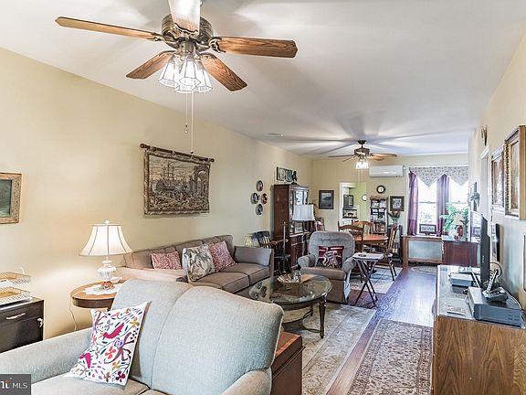 Historic, charming brick townhome with a beautiful open front porch overlooking the spacious Roebling Museum grounds. The main level features a living and dining room open floor plan with laminate wood floors and a built-in pantry. The pristine kitchen leads to a beautiful fenced rear yard with a large paver patio and back door awning. A large master bedroom with his and hers closets, a second bedroom, and full bathroom with new tub enclosure, complete the second floor. This move-in ready home comes with all kitchen appliances, a newly installed split system AC/Heat Pump unit, a washer, dryer, and freezer in the full basement. Roof installed 2016. Walking distance to the Delaware River, and the River Line between Trenton and Camden. Close proximity to train station, to NYC, public bus routes, and major highways including NJ and PA Turnpikes, I-95 and I-295.