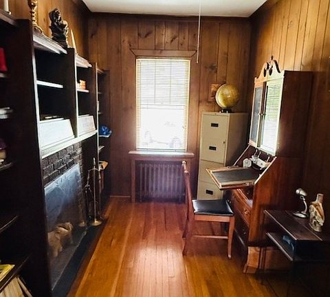 You will be impressed when seeing this incredibly well maintained colonial inside and out. Kitchen upgraded from original with new cabinets, sink, counter, gas stove & pergo flooring. Nice size pantry in kitchen. Refrigerator included in sale. Wood burning fireplace in office is (as is). Second floor provides 3 bedrooms, 3 good sized walk-in closets plus linen closet & full bath with authentic claw foot tub, vanity, & ceramic flooring. Hardwood flooring throughout. 3 ceiling fans & 2 window air conditioners included in sale.