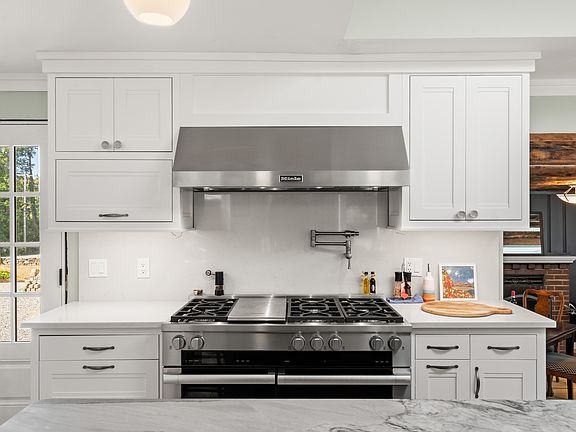 Breathe deep the ocean air. Within a mile and a half of the beaches, 153 Atlantic is a retreat that offers comfort, luxury, and proximity to the ocean's allure. Enter and feel the warmth and beauty that define seaside living at its finest. This 1835 farmhouse has been completely renovated to maintain its original charm and still offer all modern convenience and exceptional accessories. The sunlit living and dining room invite you to unwind with panoramic views of the stone walls and woods beyond, serving as a constant reminder of the natural beauty that surrounds you. You can enjoy these views from either of the front and back porches, as well. With over an acre of land surrounding the house, there is plenty of room to relax and play in the yard. Enter the bright, expansive kitchen, where elegance meets functionality in a culinary haven designed to inspire your inner chef. With ample counter space, top-of-the-line Miele and Bosch appliances, a 9.5 foot island with gorgeous Italian granite countertop, and more custom finishes, this kitchen is more than just a room it's a canvas for your culinary and entertaining aspirations. The adjacent keeping room offers a cozy retreat, replete with beverage bar, wine cooler, leather couch, television, a game table, and gas fireplace. Four en-suite bedrooms (two primary suites) and four and a half baths placed across 3100 square feet, provide ample space to spread out and unwind. Each room offers a haven of tranquility, and the "kids' room" sleeps up to four. There is a soaking tub for two, and all of the very large shower rooms feature two to three shower heads for convenience and comfort.