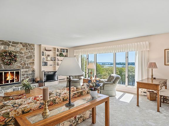 Cozy stone fireplaceFinished walkout guest suiteFirst floor livingAmple deck spaceCaptivating waterfront propertyEn-suite primary bedroomAdjacent eat-in kitchen nook