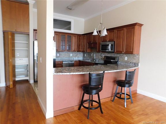 Enjoy the excitement of living in the heart of the city. Walking distance to restaurants, train, ferry and the waterfront park. Views of the Thames River. Granite counters, stainless appliances, hardwood floors, tiled bathrooms, split wall units for A/C. Unique New York style apartment. Secure building