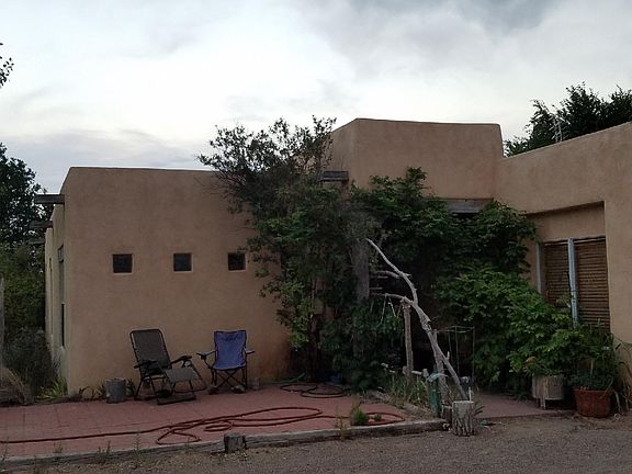 Charming SW casita with spectacular views & Santa Fe ambiance, close to shopping, on an acre lot which allows horses! Wow! The pool and deck are enhanced by a lush yard with fruit trees, and large covered portal is ensconced with wisteria and grape vines. Flowers abound and with a well, no water bill to maintain all the greenery. 6 panel wood doors, beamed ceilings, kiva FP, skylights, ceiling fans and so much more. Master bath has custom vanity and tub. Vintage stove in kitchen has built in grill and warming oven. Instant hot water dispenser and extra large farmhouse sink add convenience. This home truly is your private retreat. For a complete list of amenities and floorplan, please look in the document section.