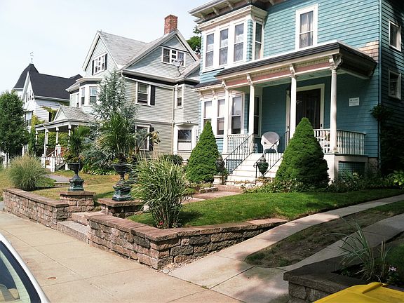 My home is located in the Historic District of Fall River, "The Highlands." The property sits on a 13,463 sq. ft. lot with a fenced in back yard, surrounded by very old and mature trees, as well as flowering bushes, ferns, and shade garden, a total tranquil paradise. One side of the yard abuts Maplecroft, Lizzie Borden's last residence. My home was built in 1888 by Mr. Robert Robertson, a prominent businessman in the city. Mr. Robertson's two children took over the residence, and in later years sold it to the Brennan family. In 1986, I became the happy owner of the home. The interior part of the home has beautiful woodwork and working fireplaces. The owner’s quarters, which have always been the second and third floors, consist of living room, library, formal dining room, four bedrooms, two on the second floor and two on the third, bathroom, and kitchen. The third floor unit has two bedrooms, with a large eat-in kitchen, living room, and bathroom. The first floor unit has two bedrooms, bathroom, double parlor, formal dining room, and a kitchen with pantry. The house can very easily be converted back to a two family. And with much sadness after 30 happy years in the home, I feel that it is time for someone new, who enjoys living in a Victorian home, to appreciate it as I do.