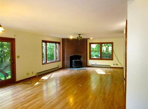 Contemporary Cape featuring cathedral ceilings, skylights and gleaming hardwood floors. The open floor plan with fireplace and the wide expanse of windows make this a great spot to enjoy the local wildlife or just drink in the sunshine. Other amenities include a master bedroom with fireplace, large deck and 3 1/3 acres offering a nice mix of open and treed areas. Located just over the Williamsburg line you can enjoy the country just minutes from town!