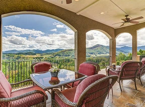 Exquisite contemporary estate on 10.5 private, gated acres. Impressive long range views of layered mountains and downtown Asheville, which is only 20 minutes away. Superb craftsmanship throughout entire home. Spacious two-story great room, elegant formal dining room and ideal chef's kitchen. Beautiful tray ceilings. Main level master retreat with amazing views from soaking tub. Spend your time outdoors on the 2500 sq ft of patio and deck space or break a sweat in your spacious personal gym! The lower level is an entertainer's dream with billiard/game room, home theater, 2nd kitchen, wine cellar, sauna and so much more!