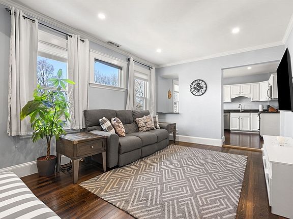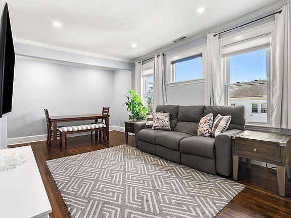 Beautifully renovated 2014 top floor condominium with a spacious open floor plan! This 3 bedroom condo features a large bright living room that opens directly to the dining room. Kitchen with granite countertops, wine fridge and stainless steel appliances. Three spacious bedrooms, 1.5 baths, in-unit laundry, 2 outdoor decks, high ceilings, charming crown molding, hardwood floors throughout, new central air units, 2 parking spaces and additional 500sf private storage space in the basement! Ideally located by the Watertown/Newton line, minutes to the commuter rail, Moody Streets restaurants/shops and Charles River Greenway.