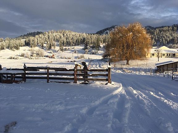 On the edge of Colville is a beautiful 11.51 acre parcel in town with two wells, zoned agriculture, commercial and residential. Nice residence with plenty of ground to use for animals or development. It has well water and septic , yet the city sewer and water is on the property line, Take a look at this completely updated home with 2 bedrooms and a bath with jetted tub. Quartz counter tops. New cabinets and flooring. Approved pellet stove for the heating system. Large Barn that could be your shop, with an additional building for cover or storage. Completely fenced. A great location in the beautiful Colville area. And another bonus, a seasonal creek runs through the property.