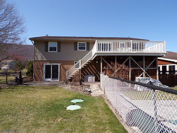 Lovely, bilevel with many custom finishes, including Cabinetree cherry kitchen, SS appliances, large full bath with custom tilework and large walk-in shower and heated floors. Family room with wet bar and wood burner insert fireplace,. 18' x 36' heated inground pool and fenced patio area. Pool shed. Large rear deck accessible from DR and lower paved patio area. 3-season room has wet bar, built-in stereo system and TV. All situated on a level, landscaped .85 acre lot in Frankstown Township. 3 heating sources; 2 heat pumps and electric baseboard heat. You've got to see this one to appreciate all the extras, and tasteful decor! Some furnishings may be available, seller is downsizing. Great place to spend your summer - everything you need is right here!
