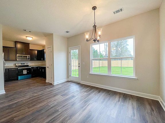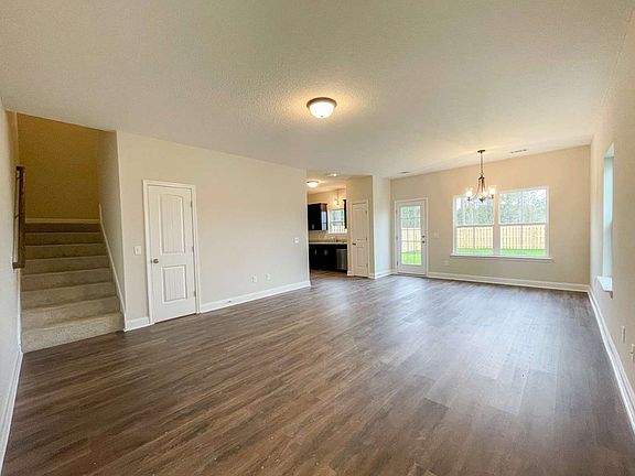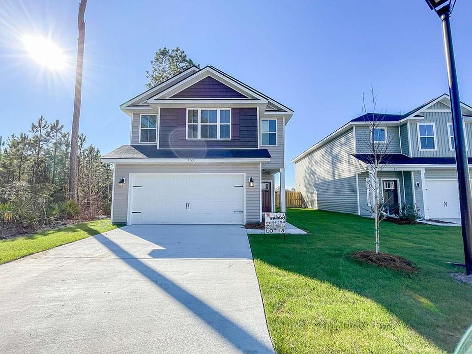 Madison plan patio home conveniently located near local shopping & dining in Heritage Pointe of Hinesville! Minutes from multiple Ft. Stewart gates as well as local area schools! Home also features sod & irrigation in front & backyards with a backyard privacy fence! Upon entry to the Madison plan take in a spacious open-concept living space with plank flooring. Peer out to your patio in the fenced backyard from the dining area and kitchen! The kitchen is situated just off the dining area with stainless appliances, granite counters plus half-bath access! Upstairs are 2 bedrooms, a hall bath, laundry room & the master suite! Within the master find 2 large walk-in closets & a private bath with dual vanity.