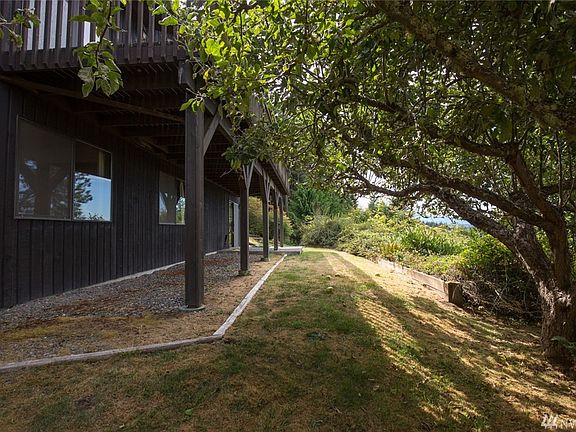 PRIVACY abounds for this home that nestles on almost 2 acres overlooking Sequim, the Strait & Victoria. Large entry with 1/2 bath. All living areas face toward the SALTWATER VIEW. Spacious kitchen can be accessed from garage for unloading groceries, etc. Mstr bedroom/bath are on main floor with glass doors to access deck. Extra bdrms/bths & 2 large finished rooms are in daylight basement. Come home to quietness! Foundation problem in past has caused some structural issues. Priced accordingly.