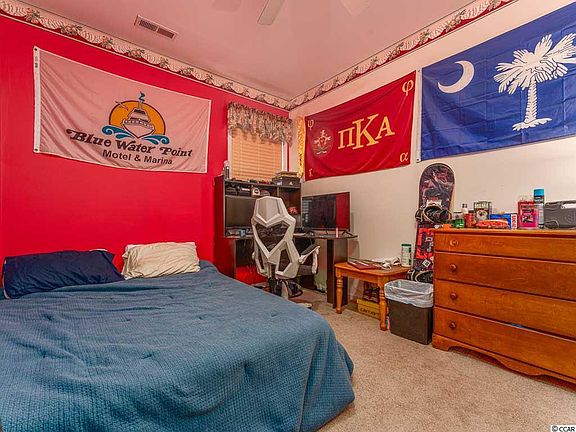 The Lakes at Plantation Pines is conveniently located close to Hwy 31 and just a short drive to Main Street in North Myrtle Beach. This light and open floor plan is perfect for entertaining. Upon entering the tiled foyer you will notice two bedrooms and a shared bath on your left. This home has larger than normal bedrooms that can accommodate most furniture. Entering the Great Room you will encounter vaulted ceilings giving the space a large feel. The main living area, kitchen and dining area have wood laminate floors which are both beautiful and durable. The galley style kitchen has a breakfast bar that is open to the great room allowing for the open feel. The spacious master bedroom overlooks the lake and a forested area. The master bath has a unique whirlpool tub to help you relax after a day at the beach. The tankless hot water heater insures you never have to worry about running out of hot water Adjacent to the dining is a Carolina Room that is the perfect spot to enjoy our wonderful Carolina weather. The backyard has a large patio that is perfect for grilling out or just relaxing while you enjoy the lake views. This area is covered by a pergola allowing for some shade. The neighborhood also has a community pool for the enjoyment of residents.
