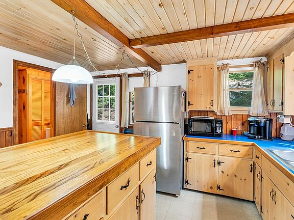 This enchanting property is nestled on the serene shores of a glistening lake, offering breathtaking views and a tranquil atmosphere. Whether you're seeking a peaceful weekend getaway or a year-round sanctuary, this home is the perfect escape from the hustle and bustle of city life. The open first-floor concept provides plenty of space to enjoy with your family and friends. Following the gorgeous white pine walls heading upstairs to an open loft to use as an office or extra living space. Two bedrooms round out your sleeping quarters with the best yet to come. Open the sliding door to your large deck to enjoy a sip of coffee (get it?) or follow the short path down to the dock by the water to enjoy a dip on a hot Summer day. The house is move in ready and looking for new owners to enjoy!