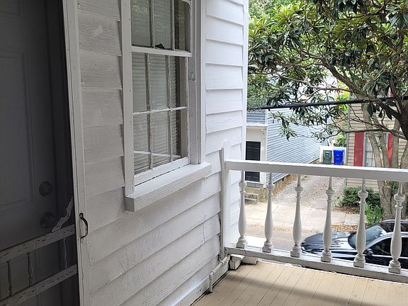 Lovely upstairs flat in historic Charleston home. Very spacious rooms with large windows and heart pine floors. The two bedrooms are nicely separate and each has a cute covered porch. The big eat-in kitchen has updated range, refrigerator, and dishwasher. One of the two bathrooms opens onto a large walk-in closet. The back yard is a pebbled garden with tropical plants and is surrounded by other historic homes. Perfectly located within three blocks of C of C, MUSC, and upper King. Street parking for two vehicles is available at a nominal cost with a city zoned parking sticker that covers the Radcliffeborough neighborhood. Renter pays for water, electric, and gas. No smoking inside the unit.
