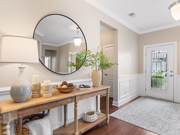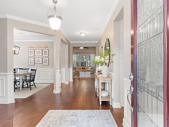 Welcome to this stunning, pristine home located on a larger, premium lot in Cameron Village! It's hard to find a new home with this much character! Upon entering, you are greeted by 10 foot ceilings, handscraped wood floors, crown molding, and wainscoting. Glass french doors to your left open to a flex room that could be used as an office or den. A secluded drop zone with custom shiplap is perfectly situated off of the garage to the right. A laundry room, half bath, pantry closet, and storage closet all encompass the area before you arrive to the inviting dining room. Wainscotting, a tray ceiling, crown molding and an amazing light fixture create the perfect ambience for dinners with family and friends. A wood beam was added to the cathedral ceiling in the great room and an electric fireplace with a surround that creates the perfect space which is open to the kitchen, extra granite workspace, and the breakfast nook. The kitchen does not disappoint with the added character of a wine rack, and decorative glass cabinets. The chef in the family will enjoy the granite countertops, stainless steel, and convenience of a pantry closet. The primary suite has a bay window, wainscotting, and a tray ceiling. A large tiled walk-in shower, double vanity and a water closet round out the suite. A second and third bedroom with a Jack and Jill bathroom finish off the first floor. Upstairs in a noncomforming bedroom with a full bathroom and closet. For enjoying South Carolina weather, the owners added Eze-Breeze to the large screened in porch. The porch overlooks a paver patio with a built in firepit! The location of Cameron Village is perfect for beach lovers with only being 6.5 miles away. Amenities include 2 pools, tennis courts, basketball court, playground and a large community center, perfectly located in the St. James School District. Close to shopping, restaurants, and the airport all bode for the perfect location. I know you just found the perfect home with all the character you are looking for!