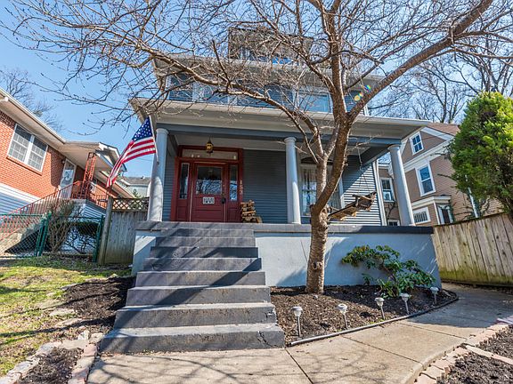 Charming 3 bedroom/1.5 bath home in one of the most historical & sought after locations in Louisville! Home has been renovated but maintained the integrity of the original style with most original woodwork & freshly painted interior & exterior! Entry way has marble flooring which continues through the hallway. Eat in kitchen has stainless steel appliances & hand-scraped wood floors. Living room is open to the dining room & has a wood-burning fireplace & beautiful wood flooring which continues throughout the dining room. 2nd level includes 3 bedrooms, a full bath & laundry room. Open 3rd level has been completely renovated with beautiful hardwood flooring. Large, covered front porch has a swing & overlooks the Olmstead Fountain in Bingham Park. 2-car parking pad with stones surrounding.