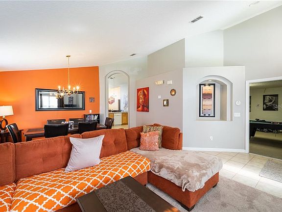 Welcome to Solana Resort! Located minutes from Walt Disney World, other popular ATTRACTIONS, restaurants, shopping and conveniences. The Solana Resort offers a RESORT-STYLE POOL and hot tub, fitness center, CLUBHOUSE with billiard table, sundry shop, theme park ticket services, PLAYGROUND, MINI-GOLF, game ARCADE, golf club rental, 24/7 manned access control, table tennis, sand VOLLEYBALL, a full service TIKI BAR for food and beverage options, discount theme park tickets, and a full schedule of lifestyle EVENTS! What you see is what you get. The pool is west facing for you to enjoy the afternoon SUN and epic SUNSETS. The OPEN FLOOR PLAN features 4 split bedrooms, 2 ensuite bathrooms and a 3rd bathroom all on one floor. With a beautiful TILE ROOF, this home was built to last. This home can be used however you would like. Whether it's residential, as a long term rental or a short term rental vacation home, the choice is yours! Don't hesitate and make your appointment to view this home today!