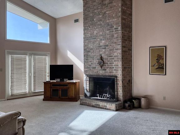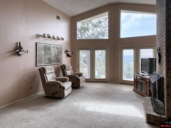 3 bed/2 bath home, split bedroom plan, open floor plan for the living room, kitchen, and dining room, vaulted ceiling, wood burning fireplace in the living room, with double doors that access the patio with a year round view of Lake Norfork. The Master bedroom and 2nd bedroom both have double doors that access patio area. All appliances included. Hardwood floors in the dining room, kitchen and bathrooms, carpet in the living room and bedrooms. All electric central heat & air with a heat pump. Outside entrance to a 4x6 storage room with the well pump, hot water heater and water filter. Property located .01 mile to the Dollar General Store and 10 miles to Mtn. Home.