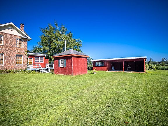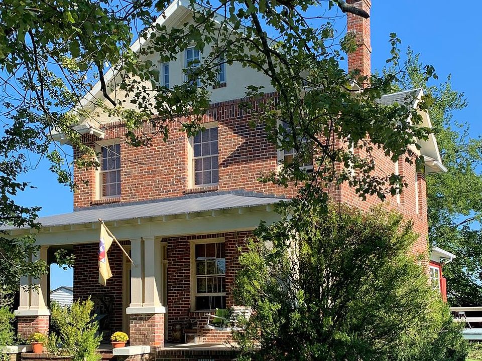 This Colonial Revival-style home has been lovingly maintained and occupied by the Almand family since it was built in 1920 by Herbert Allen Almand. Every detail of the craftsmanship is reflected in the quality construction, from the Flemish bond brick exterior, stucco gables, slate roof, handmade brick, plaster walls, original windows, hardwood floors, french doors, and original molding and trim. There is no denying that living on "Easy Street" surrounded by lush fields of corn and soybeans, with a clear view of the sunrise and sunset from the comfort of your front porch swing is a dream come true. The home has four bedrooms on the 2nd level, two additional rooms on the 3rd lever suitable for bedrooms or home offices. The cozy main-level den with fireplace and a bank of built-in shelving and cabinets was once used as a first-level bedroom with a half bath and rough-in shower. A grand foyer with French doors separates the living and dining and a spacious kitchen completes the main level. A rear enclosed offers extra space for a nice utility/laundry area,3 outbuildings including coal shed, implement shed & furnace shed. Furnishings are available for purchase.