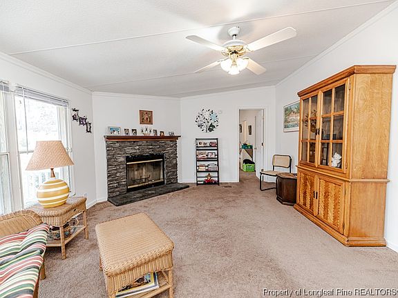 WELCOME HOME!!! This charming 3-bedroom, 2-bathroom manufactured home nestled on 0.34 acres is a hidden gem. Located just off Buffalo Lakes Rd and Hwy 87, it's a quick drive to FORT LIBERTY or Sanford. The property boasts a fenced backyard, perfect for pets or outdoor gatherings, and features a rear deck and covered front porch for relaxing in the fresh air. Inside, you'll find a cozy living room with a fireplace, perfect for those chilly evenings. Showings begin on Friday, March 22nd.