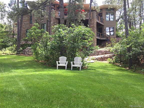 Spectacular, private, ranch walkout in an inspirational setting among 1.27 wooded acres. Backs to golf course in the gated community of The Village at Castle Pines. Enjoy the waterfall, forest, cliffs, sunsets, and abundance of wildlife from 3 decks and 2 patios. The owners have completed 8 years of thoughtful and detailed renovations, inside and out, featuring a clean modern aesthetic and the character of high-end custom finishes and fixtures throughout. Very well-maintained home showing pride of ownership. Inside, you'll find an architecturally intriguing environment. Experience warm woods, Italian tiles and marble, and striking statement light fixtures. The kitchen boasts striking flat panel European-style cabinets, Italian mosaic marble back splash, waterfall edge island with bar seating, Wolf range/ovens, Subzero refrigerator/freezer, and Bosch dishwasher. The fireplace/entertainment feature wall incorporates dramatic porcelain and Italian Dolomite marble slabs. Art niches, feature lighting, rich wood trim. Master bath w/heated floor, steam shower, glass and marble tile, modern glass pendant lighting, and massive luxurious oval free-standing tub. Huge master closet with 12-foot ceilings. Powder Room with Venetian plaster and glass-blown sink from Estes Park studio. Secondary baths echo a common theme. Home theater, wet bar, and game room. All sinks, toilets and fixtures replaced. 3 fireplaces. New furnace, A/C unit and 75-gallon water heater. Fire sprinkler system. South facing driveway. Garage floor coated in 2019. Includes home theater TV in lower level entertainment space, gas grill, and washer/dryer. The neighborhood provides 24-hour security, multiple pools, fitness center, tennis and pickle ball, and community activities throughout the year. This one-of-a-kind custom home captures the essence of Colorado luxury living in The Village at Castle Pines. 77 photos are available on the REColorado Virtual Tour icon or by contacting the Listing Agent.
