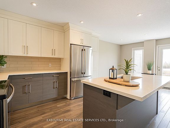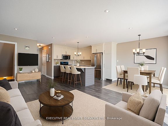 Beautifully upgraded townhouse in a desirable Stratford neighborhood with no house at the back, offering rare privacy and open views of green space. (Photos are virtually staged for visualization purposes.) This move-in-ready home features high ceilings and dimmable pot lights throughout the main floor and basement, creating a warm and inviting ambiance.The upgraded kitchen includes ceiling-height cabinetry, brand-new stainless steel stove and dishwasher, and a spacious layout perfect for both daily living and entertaining. Enjoy the elegance of hardwood flooring throughout and a curtain-free design that allows natural light to pour in.The finished basement includes a 3-piece washroom, providing extra space for guests, a home office, or recreation. Upstairs, the massive primary bedroom features a walk-in closet, while the other two bedrooms boast beautiful views of an open field.Garage includes built-in storage and is equipped with a rough-in for an electric car charger (previously had a Tesla charger installed). Driveway fits 2 cars with room for 1 more in the garage. Located just 5 minutes from Stratford Hospital, Walmart, and all major amenities, this is the perfect home for families or professionals seeking comfort, space, and convenience.