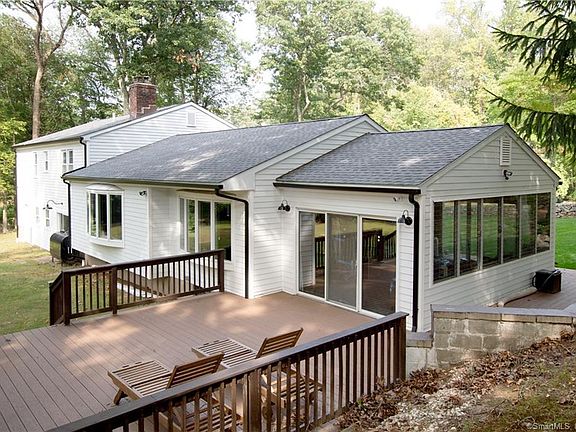 Newly renovated home in sought-after West Norwalk on 1 level acre bordering Oak Hills golf course offers a rare combination of open space, privacy and views. Spacious entryway leads to the sun-drenched Living and Dining Rooms both with large bay windows overlooking the back yard and the golf course beyond. The Eat-In-Kitchen has sliders to the large Sun Room that also opens to the front and back of the wrap-around Deck - so many opportunities here for relaxing, entertaining, playing, exercising, or creating a separate home office. Upstairs are the 4 bedrooms, all with ample closet space, and 2 full baths. The Primary Bedroom's luxurious bath has a large walk-in shower and soaking tub, and a double-sink vanity with marble countertops. Lower level Family Room has high ceiling with wooden beams, a wood-burning fireplace and sliders to the back yard. The attached 2 car garage has 2 entries into the house - one through the Laundry Room and Half Bath, so you can throw your muddy clothes right into the hamper and wash dirty hands (or paws before coming inside. Updates since 2018 include NEW roof, siding, well pump, water heater, water filtration system, septic tank, oil tank, smart thermostat, professional landscaping, smart irrigation. Watch amazing sunsets over the rolling hills of the golf course from the privacy of your own back yard, while still being so close to everything Norwalk has to offer - shopping, restaurants, parks and beaches, highways and MetroNorth train stations.